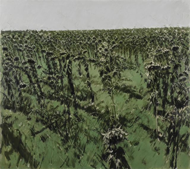 讲座开始前,记者专访许江。当被问及是否从某部戏曲或某篇文章中汲取灵感时,许江直言,“我从小喜欢文学,文学对我的滋养,可能超过了所有其他形式的艺术。”在他著名的《葵园十二景》系列中,文学的影子清晰可辨。为画作命名时,他巧妙化用中国古诗词的形式与意蕴,比如,灰蒙蒙的、沧桑荒寒的葵园,取名《西风瘦》;几株非常可爱的葵,则叫《安公子》;另有《花田错》《水云间》等等,“仿佛是词牌,但细究起来,这些又不是中国古代真正的词牌名。”这种“似是而非”的意境,将人们带到诗画相生的境界中,在许江笔下的葵里,咀嚼中国文字独有的古典美。“画名为画作本身增色。这种取名方式,引着看画的观众回头去琢磨文字。”戏曲的韵律,也悄悄浸入许江的笔触。“中国戏曲表演时讲究抑扬顿挫,在绘画上,用笔、色彩,同样要有抑扬顿挫的节奏感。”