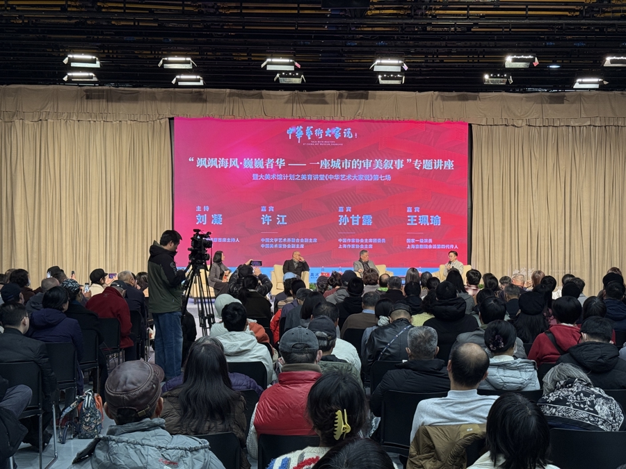 “站在北外滩,望着浦江两岸雄伟的天际线,楼房、行船在天光云影中若隐若现,我很感动。我希望能将它们画成一幅巨大的画,献给上海的观众。”中国油画学会会长许江饱含情感地说。12月21日冬至,上海美术馆(中华艺术宫)迎来了一场别开生面的对谈。许江、作家孙甘露、京剧演员王珮瑜三位不同领域的“大家”齐聚一堂,以“飒飒海风·巍巍者华——一座城市的审美叙事”为主题,共探美术、戏曲与文学如何在这座城市里交织,并共同塑造上海文化脉搏。